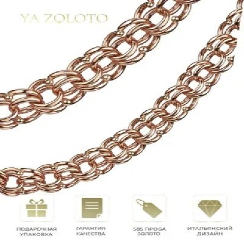 Цепочка на шею мужская из красного золота 585 пробы. Бисмарк - одно из самых сложных и красивых ручных плетений. Цепь на шею мужская – прекрасный подарок для близкого человека, который любит подчеркивать свой статус и вкус. Красивая цепочка из золота 585 пробы с алмазной гранью прекрасно смотрится и на женщине. Крепкое плетение подходит для крестика, для иконки. Украшение на шею имеет крепкий, надежный замок. Ширина цепи 0,6 см.