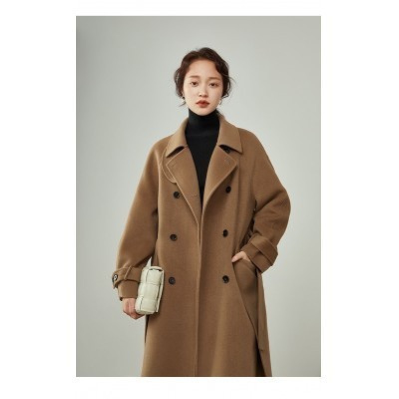 коллекционные товары FSLE Womens Winter Korean Temperament Double-breasted 100% Wool Double-faced Wo