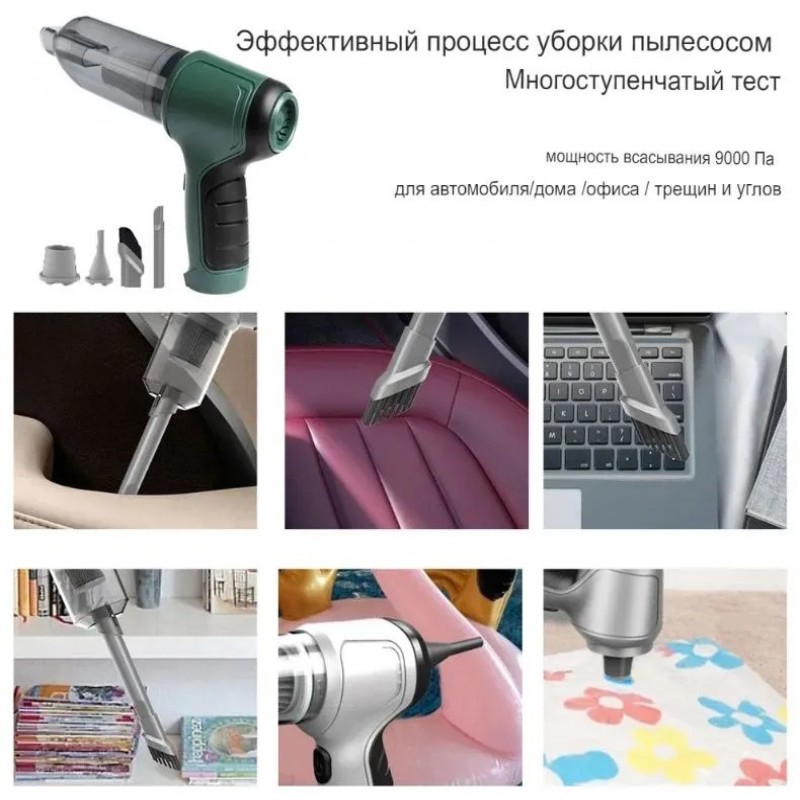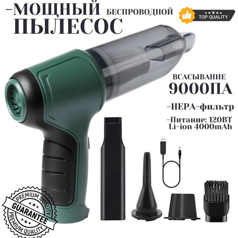 Мощный, пылесос аккумуляторный ручной, аккумуляторные пылесосы, 4000 мАч, 9000па, 120 Вт цвет Зелены