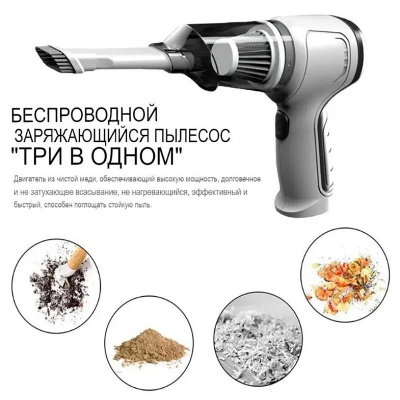 -3 В 1- Используется не только как пылесосдля уборки дома и салона автомобиля, но также как воздуходувка и вакуумный компрессор.