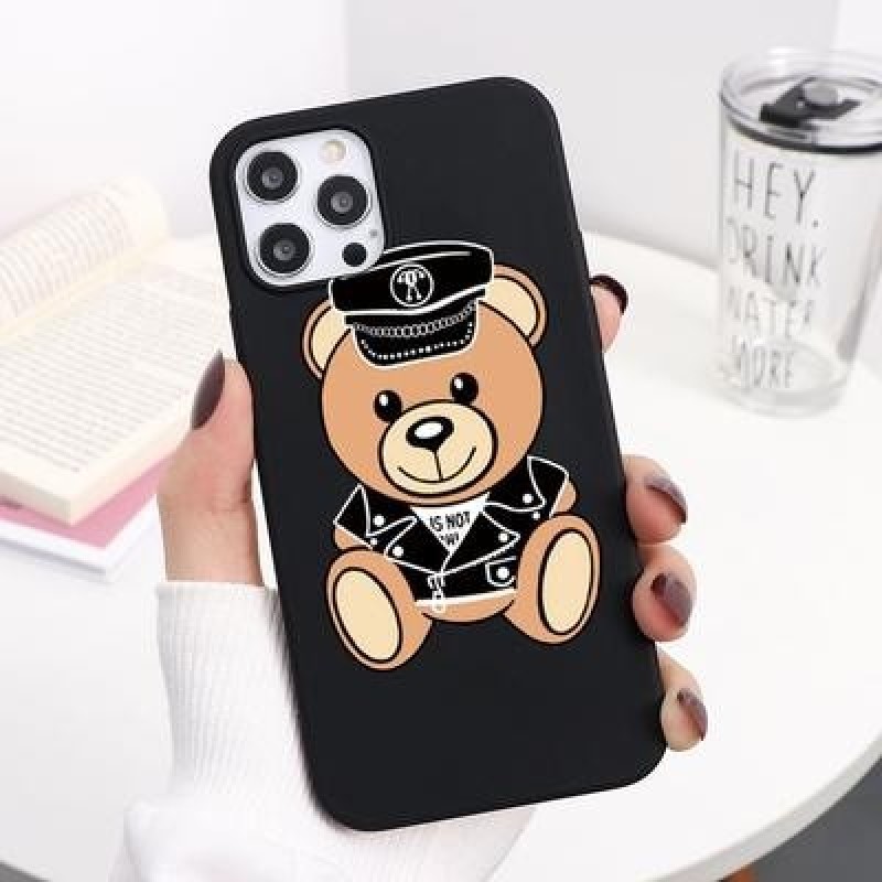 Мультфильм Симпатичный Медведь Медведь Пара Черный Чехол для телефона для iPhone 13 12 11 Pro Max Xi